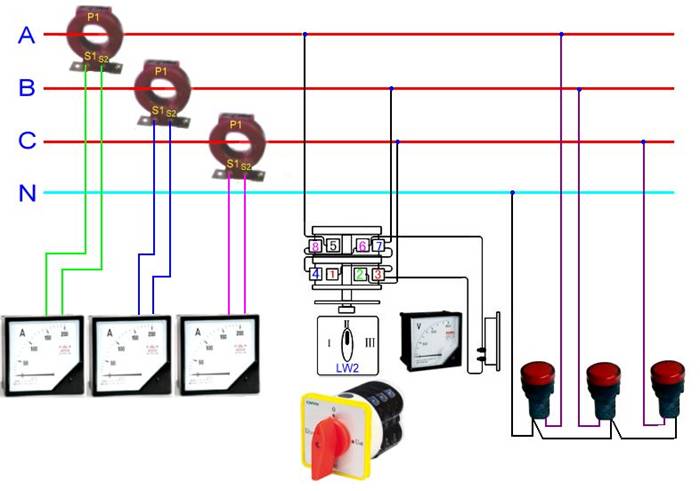 電流互感器接電流表,電壓表時(shí)的接線方式。 首先,實(shí)物接線圖如下: 相關(guān)產(chǎn)品說(shuō)明:電流互感器3臺(tái),電流表三只,指示燈三只,電壓表一只,LW2萬(wàn)能轉(zhuǎn)換開關(guān)一個(gè)。 基本的接線方式如上,附一些相關(guān)說(shuō)明: 257...