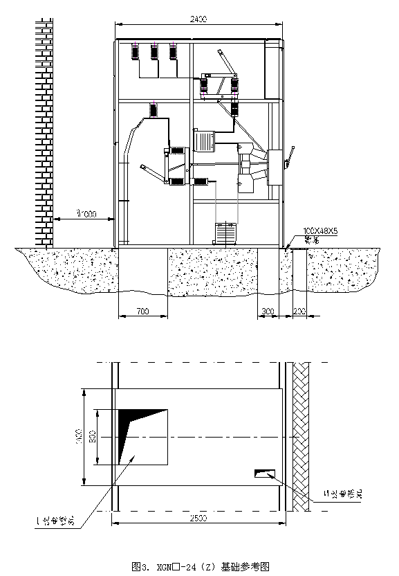 開關柜基礎參考圖3進行設計和施工,基礎應平整。