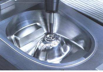 (3)高效曲面加工。在普遍采用前瞻技術,對加工速度、加速度和加加速度進行優化控制的同時,針對曲面加工采用NURBS等樣條插補。例如,西門子采用“精優曲面”技術,不但提高了曲面加工質量而且縮短了加工時間,FANUC采用納米平滑技術,海德漢通過定義加工時間、精度和粗糙度的不同優先策略來實現高效的曲面加工。高效曲面加工借助樣條插補實現連續的運動控制、不頻繁改變運動方向,避免了不必要的加速和制動過程,從而具有明顯的節能效果。在加工圖4所示的模具復雜曲面時甚至可節能60%。