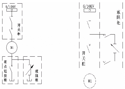 定子側(cè)串入液體電阻本質(zhì)上屬于降壓起動。對于大功率高壓籠型電動機(jī)而言,在電網(wǎng)短路容量及變壓器容量不是足夠大或瞬時機(jī)械沖擊過大時,是最佳起動方式之一。