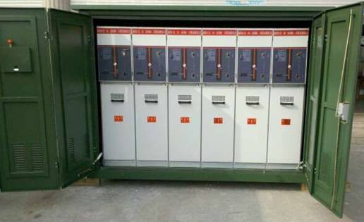 b、環(huán)網(wǎng)柜。環(huán)網(wǎng)柜(Ring Main Unit)是一組高壓開關(guān)設(shè)備裝在金屬或非金屬絕緣柜體內(nèi)或做成拼裝間隔式環(huán)網(wǎng)供電單元的電氣設(shè)備,其核心部分采用負(fù)荷開關(guān)和熔斷器,具有結(jié)構(gòu)簡單、體積小、價格低、可提高供電參數(shù)和性能以及供電安全等優(yōu)點。