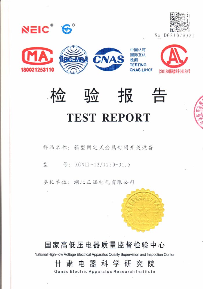 高壓開關(guān)柜KYN28檢驗(yàn)報(bào)告IEC標(biāo)準(zhǔn)
