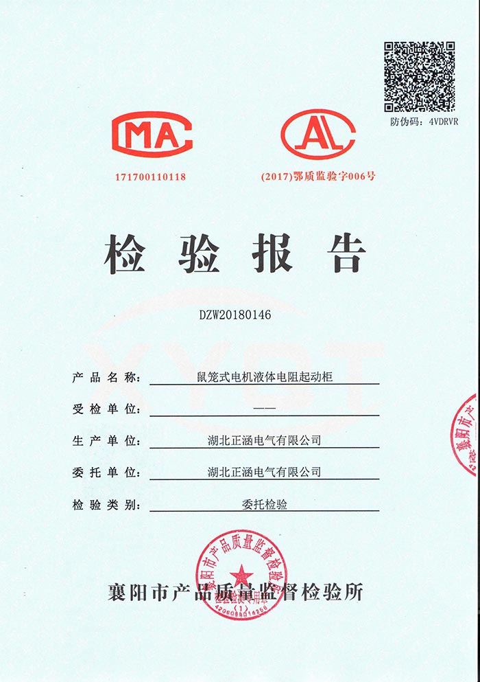 液體電阻起動柜檢驗報告(鼠籠式電機)